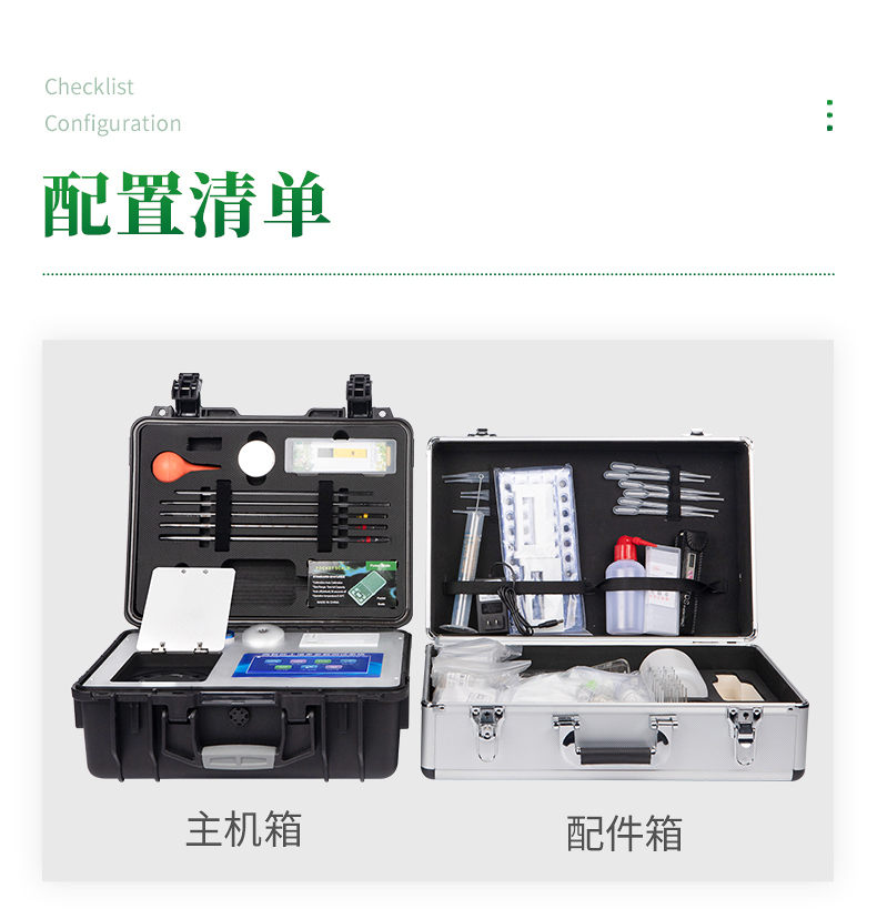 配套齊全:該儀器集藥、器、儀為一體,攜帶方便,相當于一個小型移動實驗室,無需用戶自配附件,亦可靈活野外流動測試。適于農(nóng)業(yè)服務部門或農(nóng)資經(jīng)銷商、高教院校、科研院所、合作社、肥料廠商、大種植戶測土施肥和鑒別肥料真假及環(huán)保檢測應用。