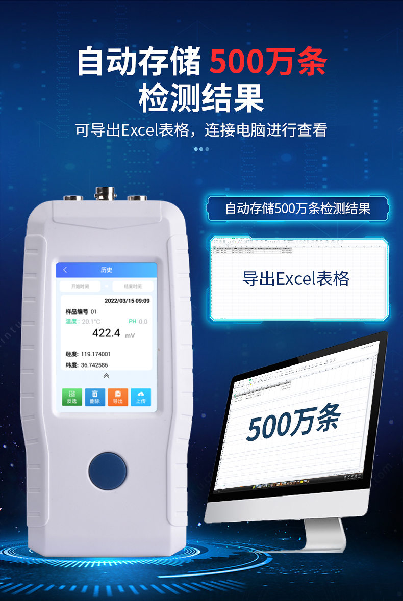 ●檢測結果可導出Excel表格,連接電腦進行查看。