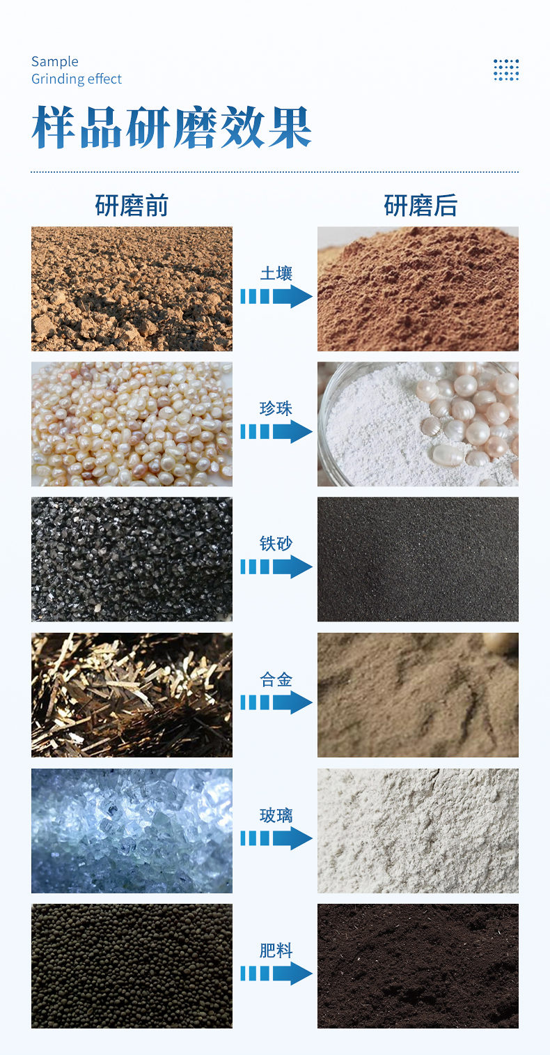 實(shí)驗(yàn)室研磨機(jī)適用于土壤、地質(zhì)、環(huán)保、第三方檢測(cè)、農(nóng)牧業(yè)、農(nóng)產(chǎn)品質(zhì)量、資源與環(huán)境等行業(yè),可以對(duì)土壤制樣、重金屬等物質(zhì)進(jìn)行研磨分析;對(duì)不同特征的樣品均可研磨,包括脆性的,纖維性的,中低硬度的,干磨或濕磨等等;