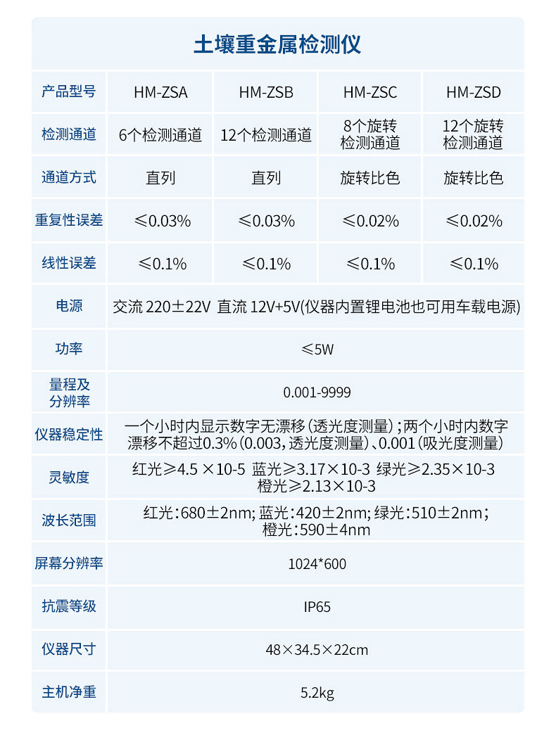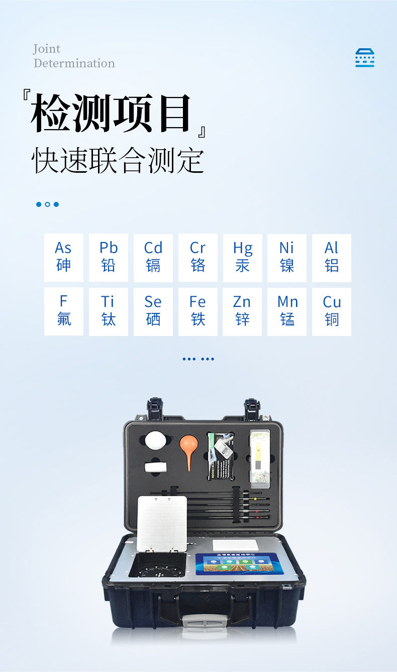 可對土壤、肥料、作物、蔬菜、水果、水質、食品等樣品中的砷、鉛、鎘、鉻、汞、鎳、鋁、氟、鈦、硒、鐵、鋅、錳、銅等進行快速聯合測定。